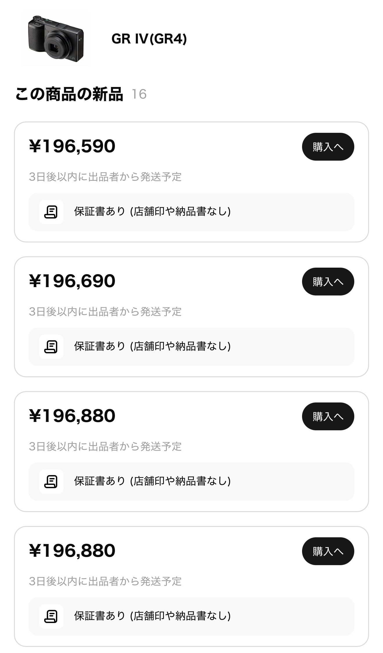 価格だけでなく、発送予定日や保証書の有無などを確認してから購入できます。